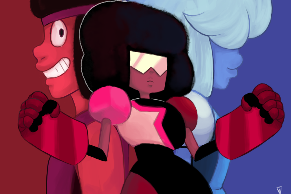 Não bastava ser incrível. Não bastava ser a líder das Crystal Gems. Não bastava ser dublada pela Estelle. Garnet precisava também ser a personificação literal do amor entre dois seres. Talvez não haja ainda uma palavra forte o suficiente para descrever a necessidade e a vontade que Ruby e Saphhire tem de ficarem e estarem juntas, então teremos que nos contentar com "amor". A própria existência de Garnet só existe devido a intensidade do amor entre as duas gems. É quase de outro mundo, não?!