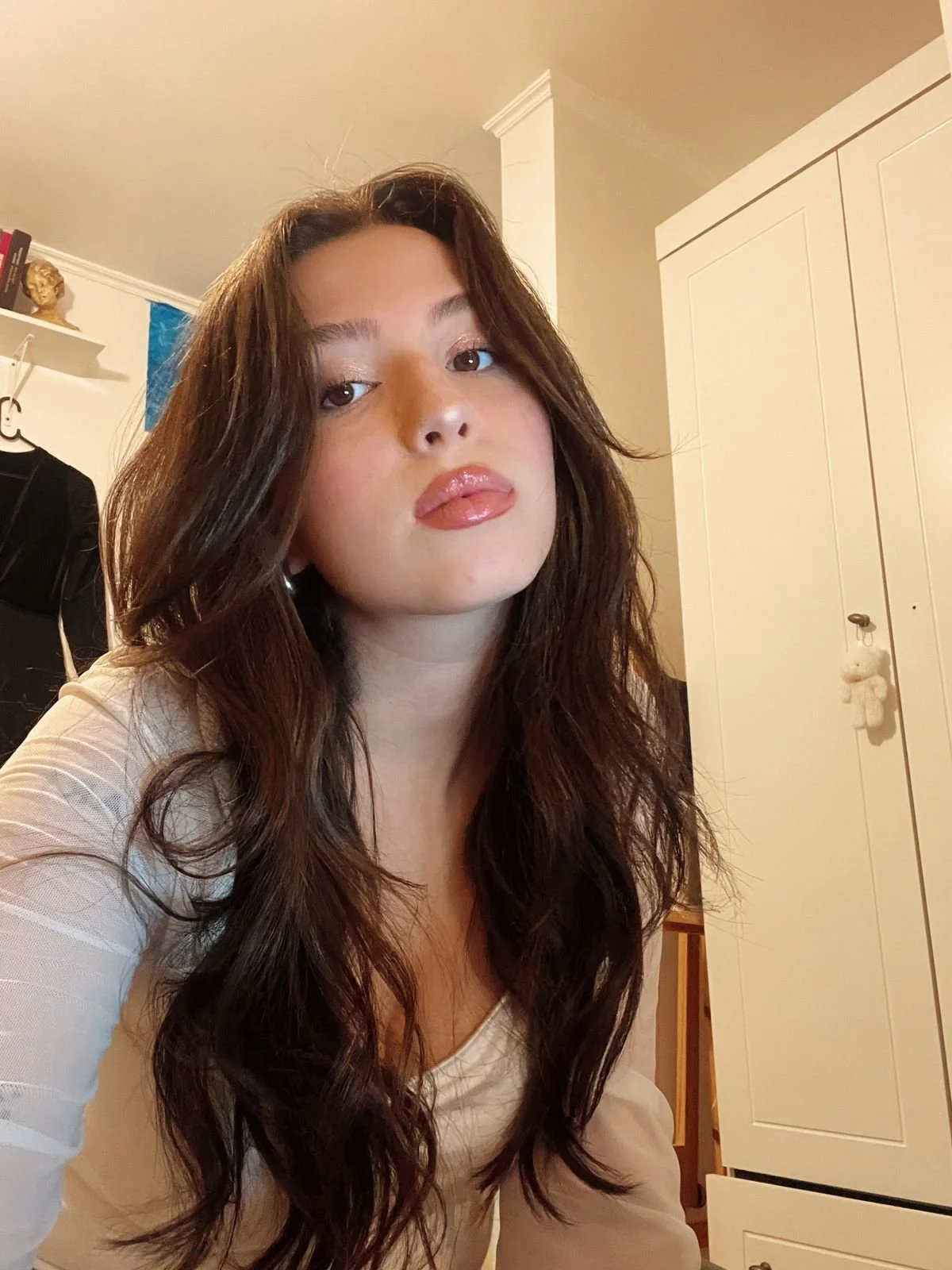 A irmã mais velha assume centralidade não apenas por possuir mais cenas individuais, mas também estruturalmente. A câmera frequentemente a posiciona como sustentação do quadro, como se a estabilidade do espaço dependesse dela. Na cena em que as duas irmãs estão deitadas na cama após a leitura do roteiro do novo filme de Gustav, a imagem treme justamente quando Nora entra em uma de suas crises. As consequências de sua infância não são verbalizadas, aparecem transpostas na maneira como a câmera a observa.